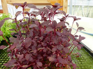 | 意見交換の様子 | 伊豆代表 | 生産しているマイクロハーブ(アマランサス) |