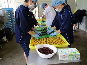 当日は、同市の地熱利用農産加工所で、商業クラブと同校雄勝校の生徒17名により乾燥機で加工されたドライチェリーの袋詰め作業などが行われました。