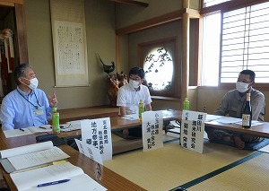 農家からは、酒米を生産するにあたっての技術面のこだわりや同会の将来に向けての課題など、また、市役所、酒造会社からは、同会に対する支援状況や製造側の実情などについてお話を伺いました。