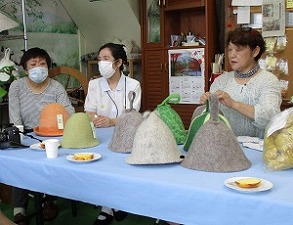 | 意見交換の様子 | 加藤マリさん(左)と姉の加藤文乃さん | だいこんの「いぶし小屋」の様子 |