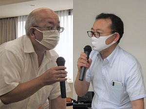 企業組合さくらの郷代表理事組合長の齋藤寛一さん(左)と道の駅駅長の安齋正人さん(右) | コメントを述べる岩崎由美子教授 |