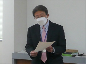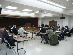 | 業務推進会議の様子 | 挨拶をする山本地方参事官(中央) |