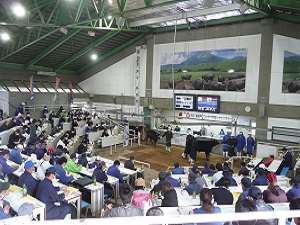 当日は、和子牛のセリ2日目で348頭の取引が成立しました。県内外から多くの生産者が集まり、福島県内の繁殖農家や農業高校の生徒によって丁寧に育てられた和子牛が次々に競り落とされる様子は、新型コロナウイルス感染症対策がとられた静かな会場内であっても、活気ある雰囲気を感じるものでした。付けられる価格に、改めて福島県内の繁殖農家の技術の高さをうかがうことができました。