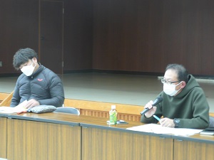 | 勉強会の様子 | 講師のお二人 NOSAI福島の入部収入保険部次長兼収入保険課長(左)と堀本課長補佐(右) |