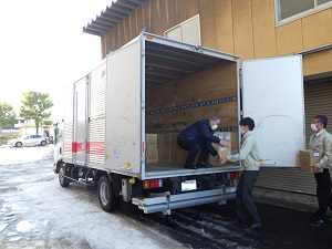 1月19日、福島県拠点では、郡山市のフードバンク郡山そっとねへ、缶入りパン144缶、保存水2リットル入180本の災害用備蓄食料の引渡しを行いました。