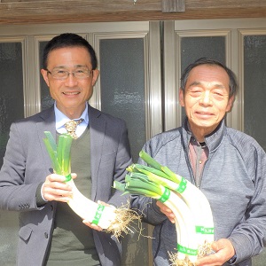 3月10日、本年2月に「地理的表示(GI)保護制度」に登録された福島県郡山市の「阿久津曲がりねぎ」の保存会会長を訪問しお話をお聞きしました。特有の柔らかな食感と味の良さで約120年前から市民に親しまれているねぎ。このねぎのGI登録に向け、関係者を巻き込み、やっと申請にたどり着いた矢先の令和2年10月に台風19号で畑、施設などに大きな被害を受けました。しかし、「阿久津曲がりねぎ」への愛着、伝統を守るとの使命感から、支援策等を活用し元通り復活して念願のGI登録に至りました。それまでのご苦労などのお話をお聞きしました。