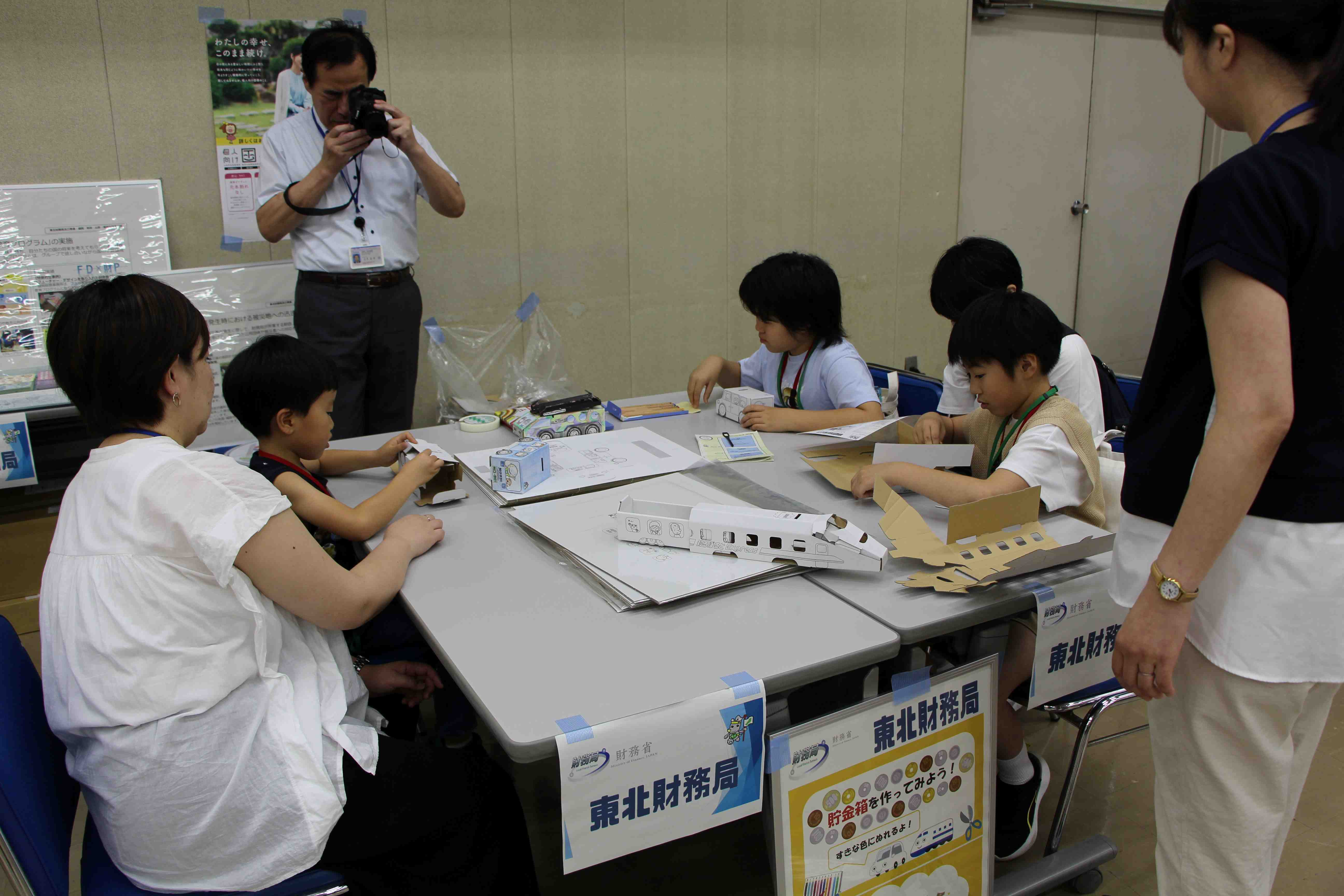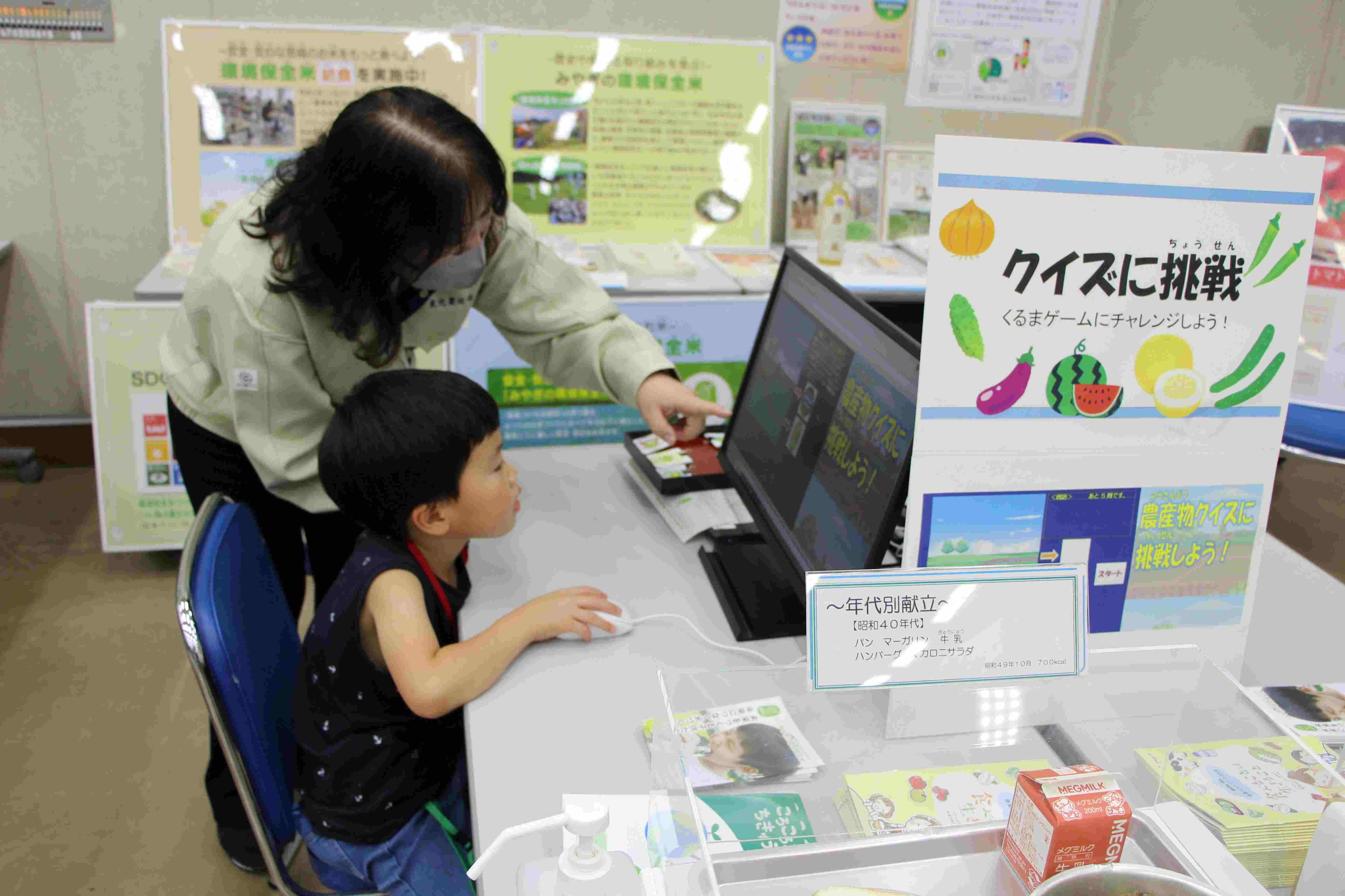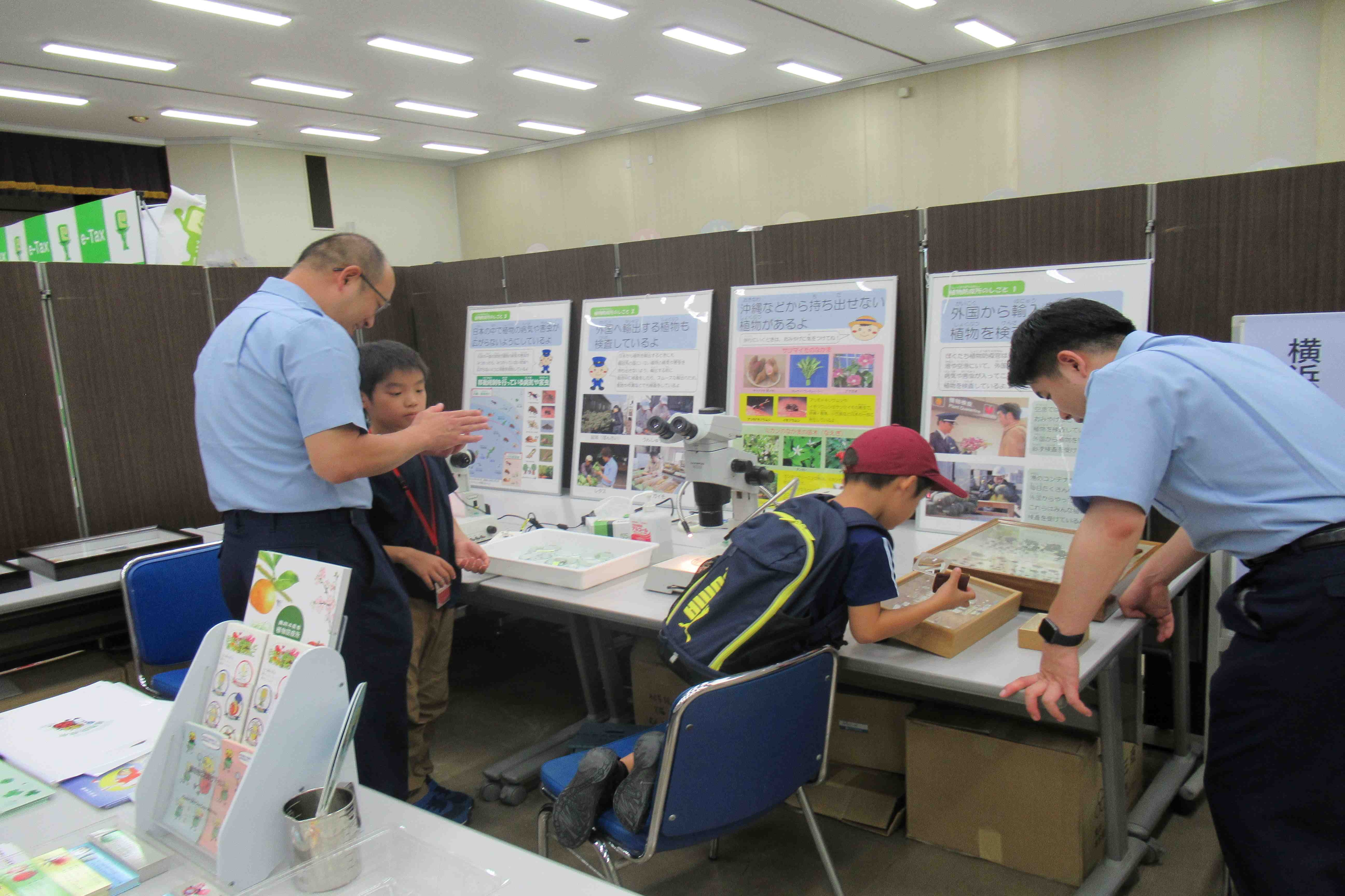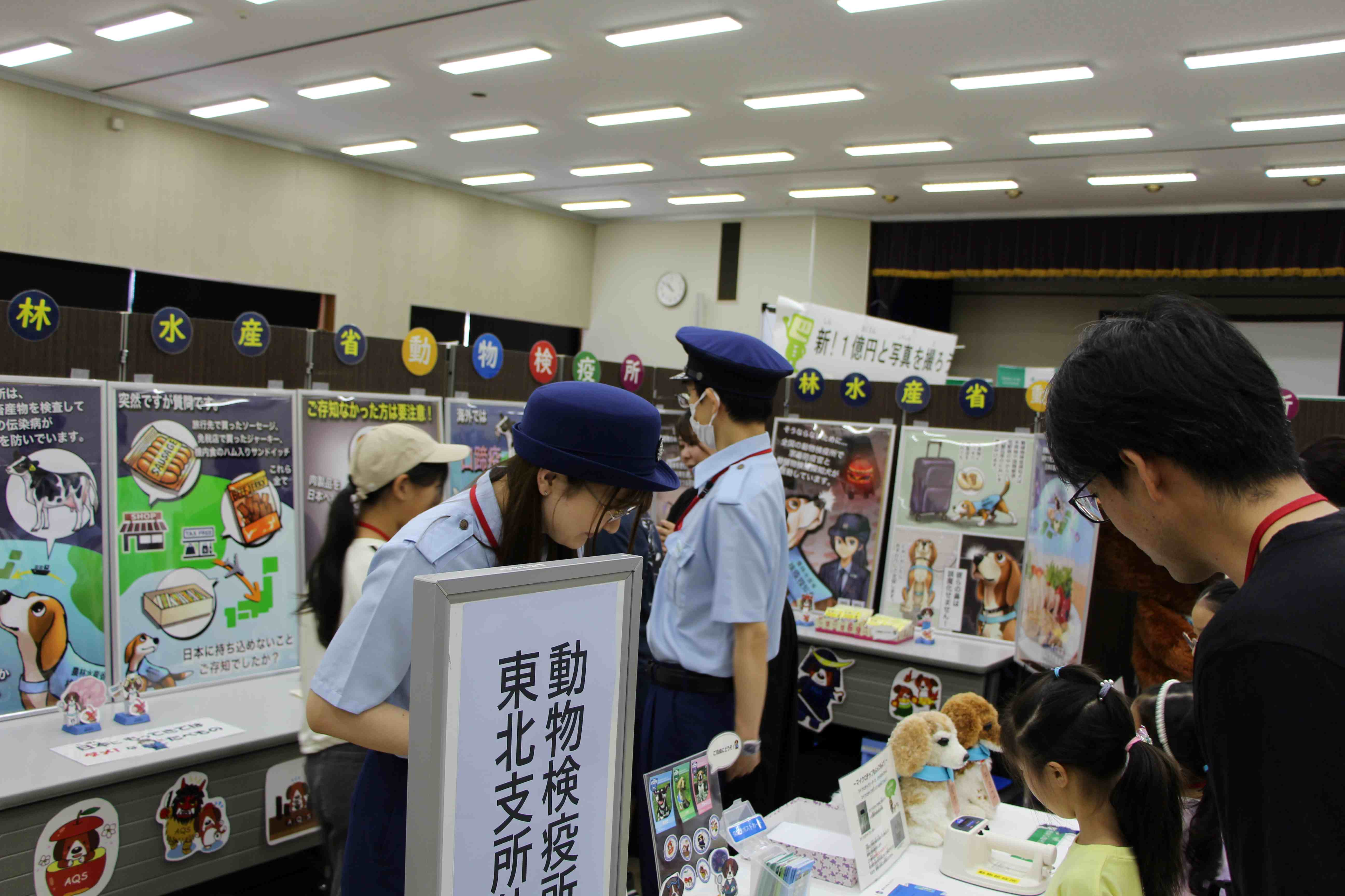 来場したこども達は、畜産・ペット・水産生物食や統計に関するクイズ、牛模型の乳しぼり、顕微鏡で昆虫観察、貯金箱作りなど多くの体験、展示に触れながら、「食べものやくらし」に関して楽しく学びました。これらの企画は、東北農政局をはじめ、参加機関が様々な工夫をして実施したものです。