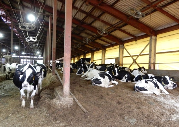 アニマルウェルフェアに配慮した飼育を行う牛舎内(12月3日撮影)