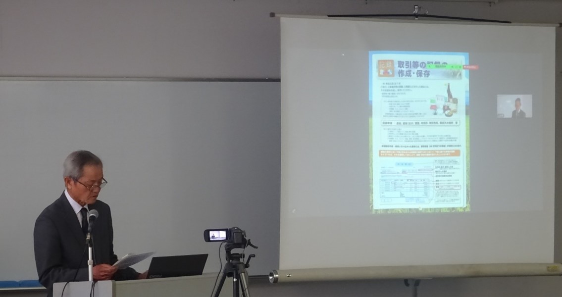 講演では「お米の生産から消費者に届くまでの流れ」「政府備蓄米の仕組み」「水稲収穫量調査」等について、動画を交え分かりやすく説明しました。