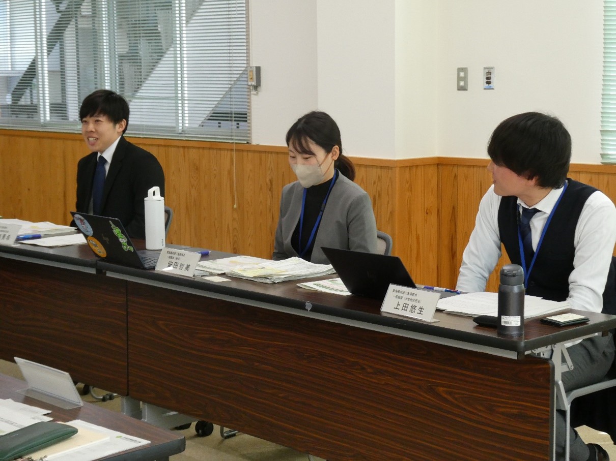 農林水産関係予算を説明する三重県拠点の若手職員(2月26日撮影)