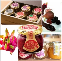 加工品:フルーツジャムシリーズ 自社生産物:いちじく、ドラゴンフルーツ、ブラックベリー、パッションフルーツ等 |