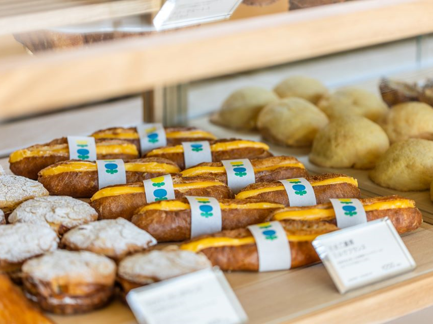 自社生産の米を使用したライスバーガー、米粉のバウムクーヘン | |