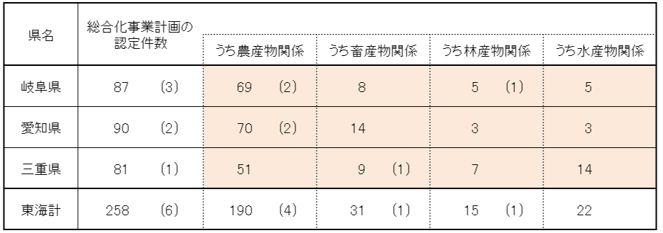 ( )書きは農林漁業成長産業化ファンドに関する認定事業計画で内数。